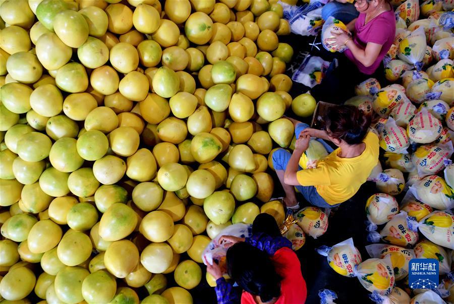 在福建省漳州市平和縣的一家蜜柚加工廠,工人在包裝蜜柚(2020年9月17日攝)。近年來(lái),平和縣出臺(tái)鼓勵(lì)扶持蜜柚產(chǎn)業(yè)轉(zhuǎn)型提升的一系列措施,走出了一條依靠蜜柚富民強(qiáng)縣的道路。新華社記者 魏培全 攝