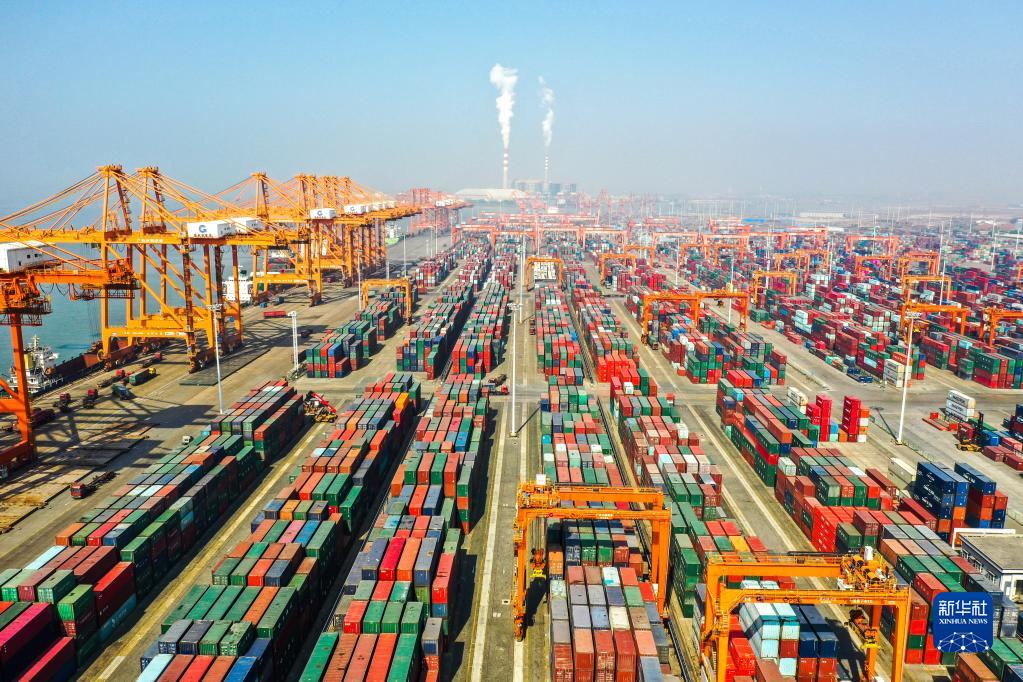 這是廣西欽州港集裝箱碼頭(2021年1月14日攝,無(wú)人機(jī)照片)。新華社記者 曹祎銘 攝