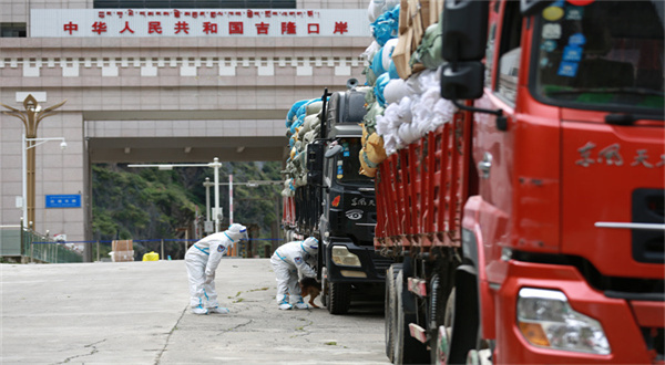 隨著吉隆口岸外貿企業(yè)復工復產,口岸逐步恢復了昔日繁忙景象。連日來,一輛輛載滿貨物的貨車經吉隆出入境邊防檢查站執(zhí)勤移民管理警察全面檢查,完成查驗手續(xù)辦理后,順利有序通關。