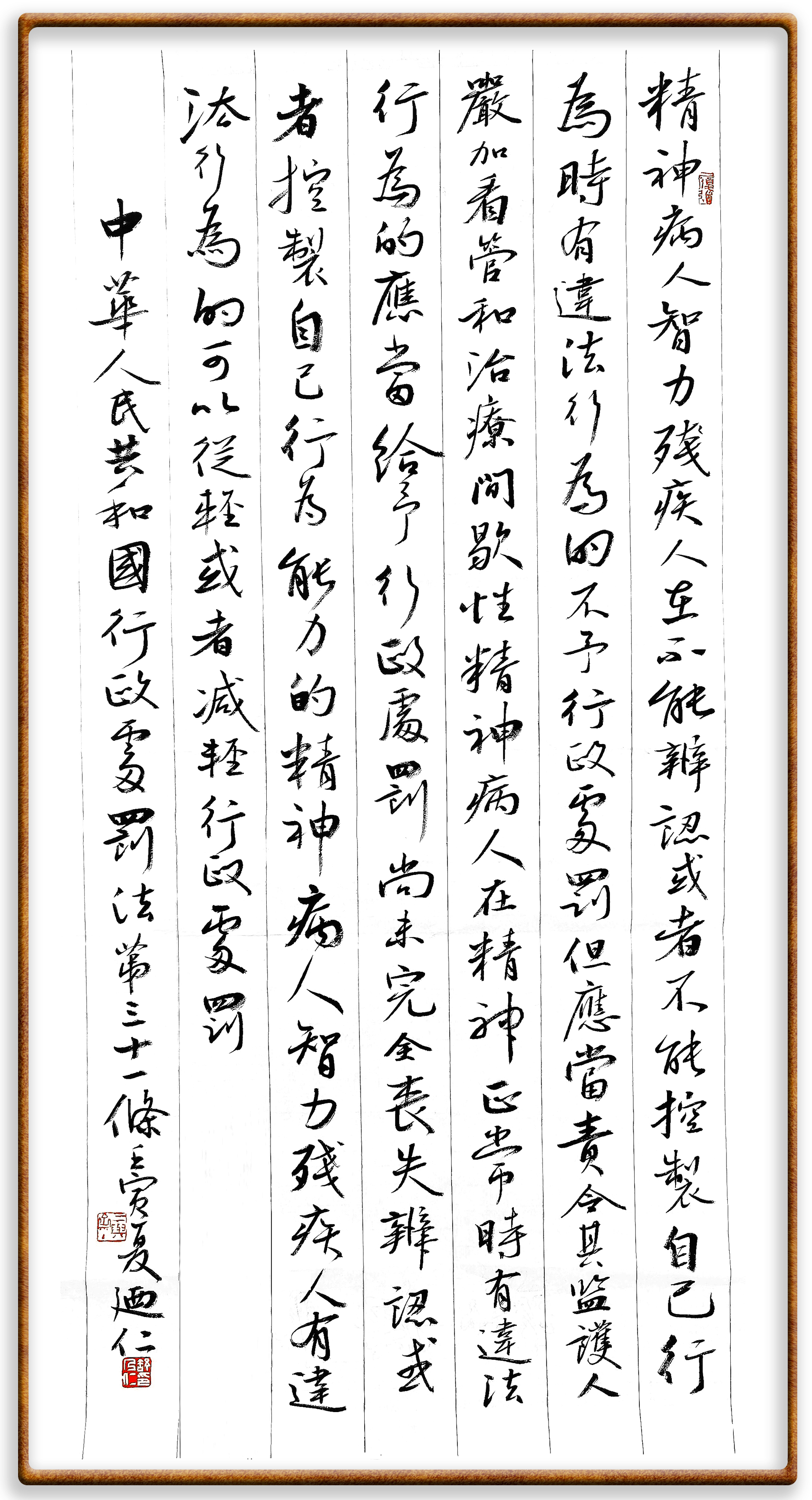 繼《中華人民共和國(guó)民法典》《中華人民共和國(guó)土地管理法》《中華人民共和國(guó)土地管理法實(shí)施條例》《中華人民共和國(guó)法律援助法》之后,法治日?qǐng)?bào)社聯(lián)合北京市司法局、北京市書法家協(xié)會(huì),將筆端對(duì)準(zhǔn)《中華人民共和國(guó)憲法》和《中華人民共和國(guó)行政處罰法》。