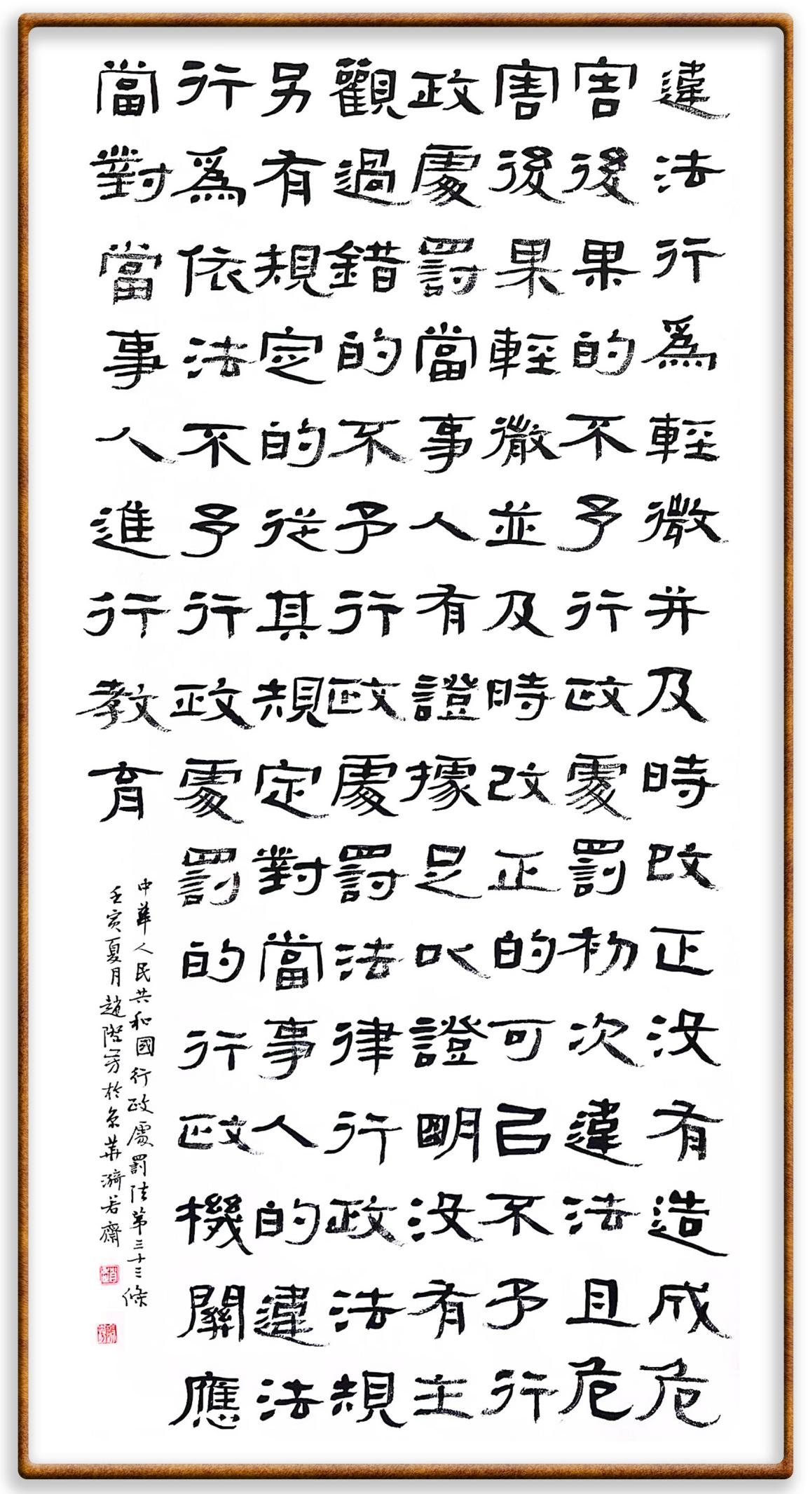 繼《中華人民共和國民法典》《中華人民共和國土地管理法》《中華人民共和國土地管理法實施條例》《中華人民共和國法律援助法》之后,法治日報社聯(lián)合北京市司法局、北京市書法家協(xié)會,將筆端對準《中華人民共和國憲法》和《中華人民共和國行政處罰法》。