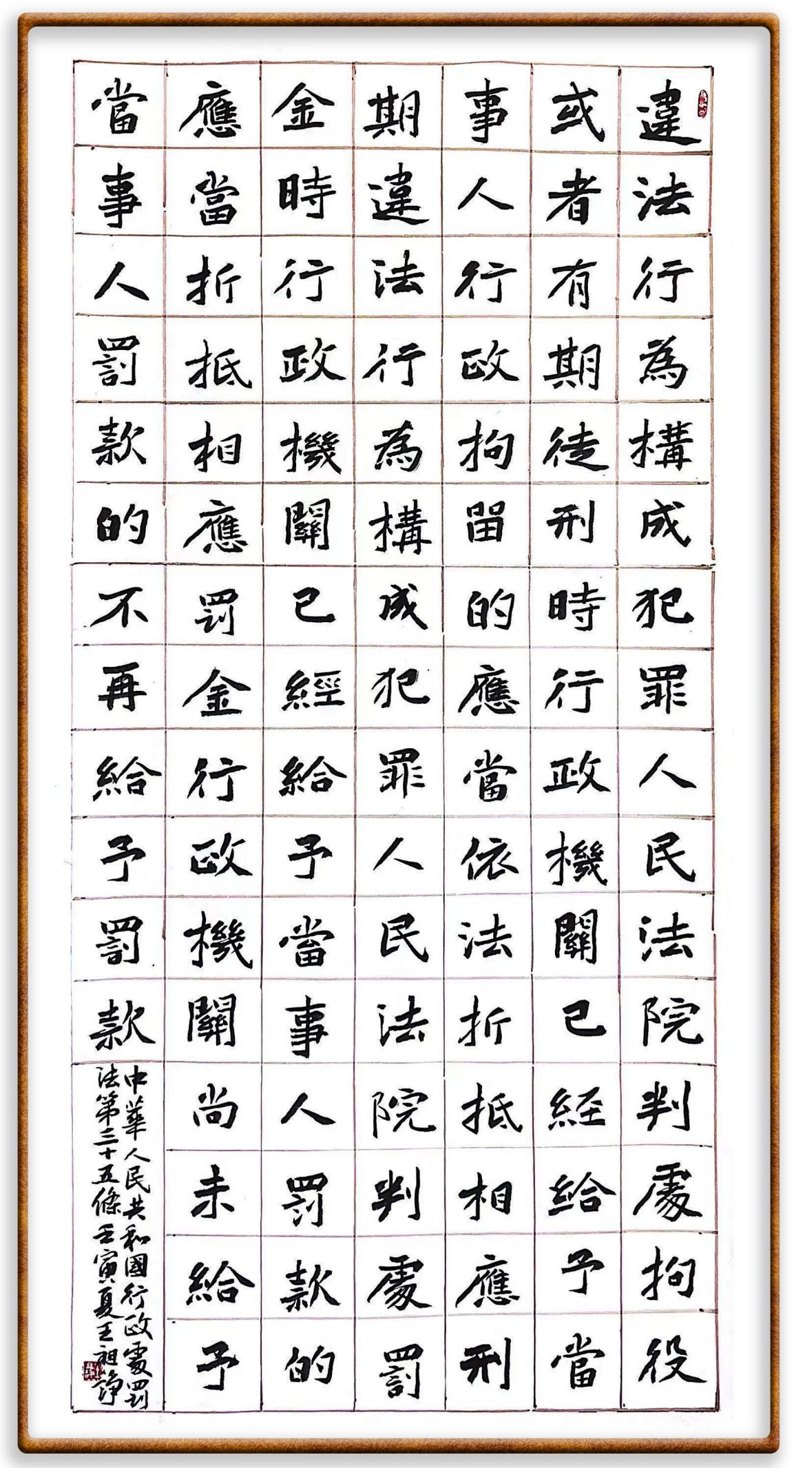 繼《中華人民共和國民法典》《中華人民共和國土地管理法》《中華人民共和國土地管理法實(shí)施條例》《中華人民共和國法律援助法》之后,法治日?qǐng)?bào)社聯(lián)合北京市司法局、北京市書法家協(xié)會(huì),將筆端對(duì)準(zhǔn)《中華人民共和國憲法》和《中華人民共和國行政處罰法》。
