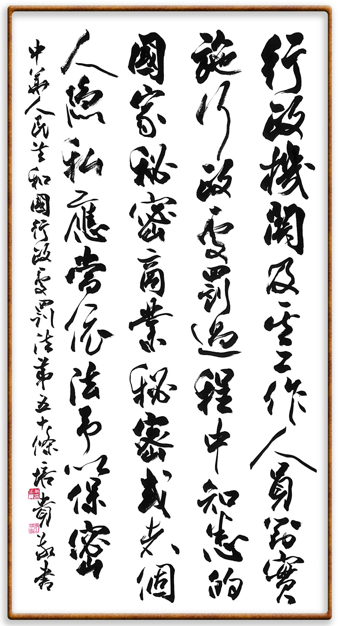 繼《中華人民共和國民法典》《中華人民共和國土地管理法》《中華人民共和國土地管理法實施條例》《中華人民共和國法律援助法》之后,法治日報社聯(lián)合北京市司法局、北京書法家協(xié)會,將筆端對準(zhǔn)《中華人民共和國憲法》和《中華人民共和國行政處罰法》。