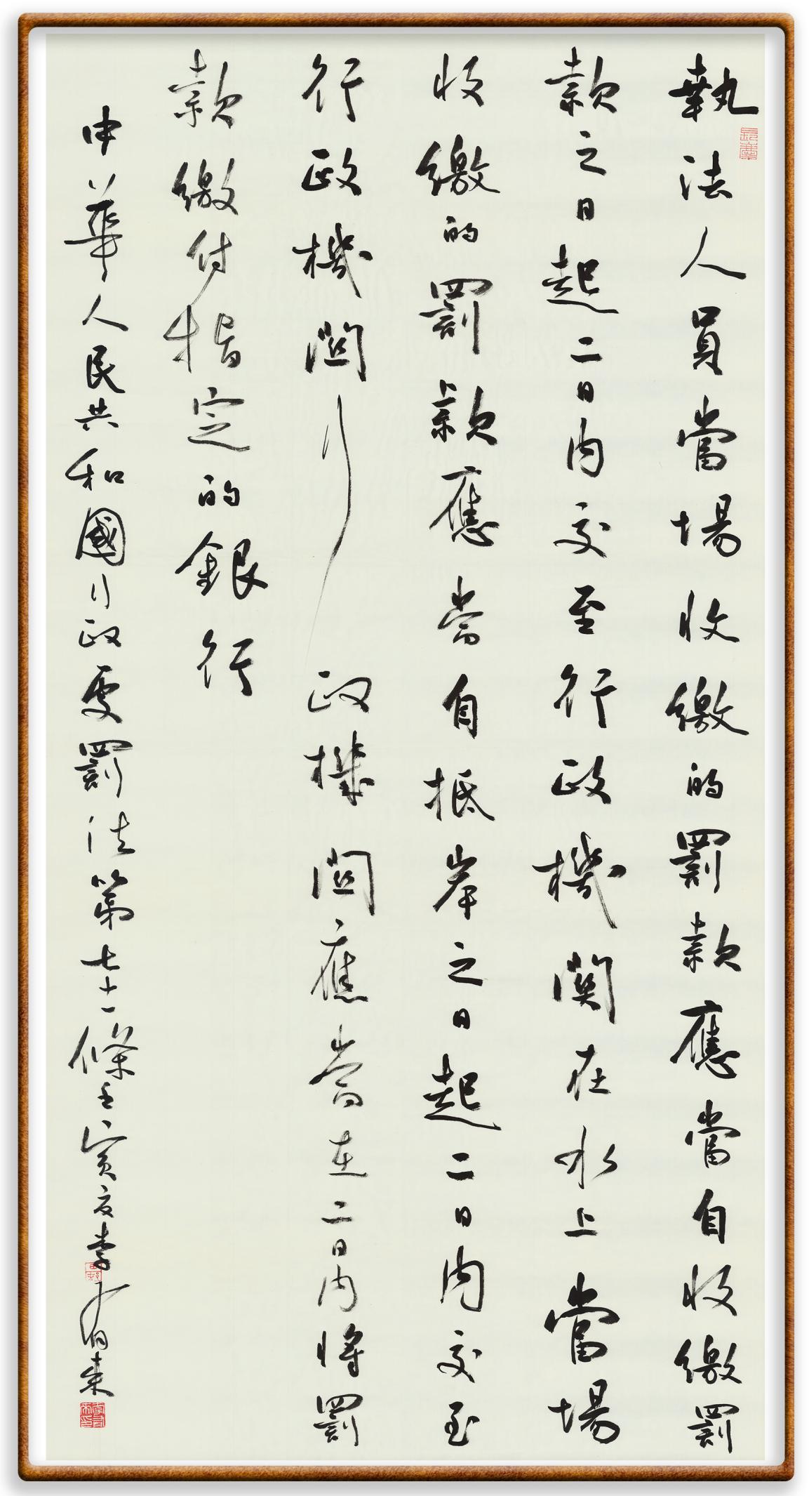 繼《中華人民共和國民法典》《中華人民共和國土地管理法》《中華人民共和國土地管理法實(shí)施條例》《中華人民共和國法律援助法》之后,法治日報(bào)社聯(lián)合北京市司法局、北京書法家協(xié)會(huì),將筆端對準(zhǔn)《中華人民共和國憲法》和《中華人民共和國行政處罰法》。