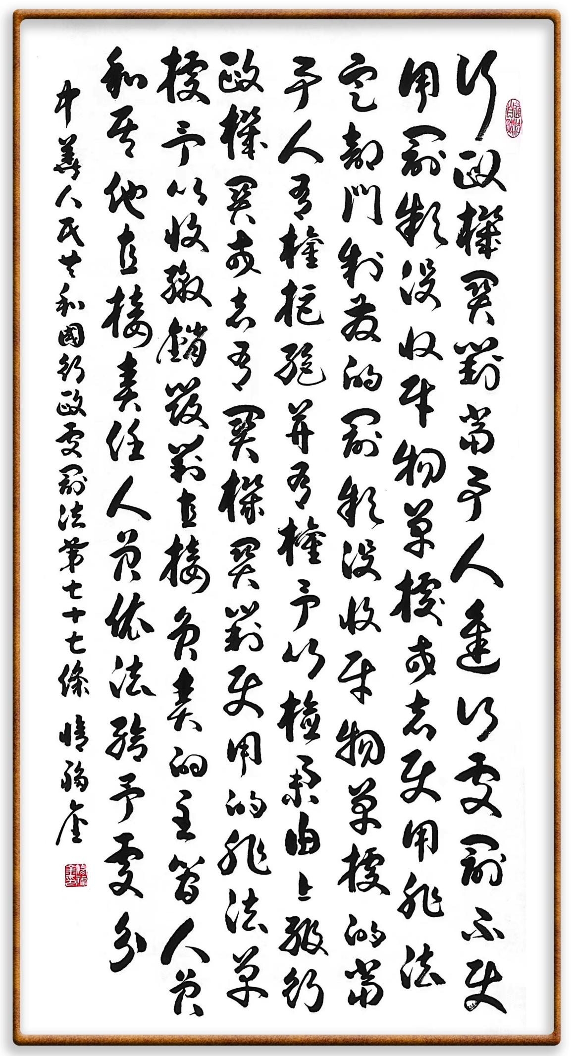 繼《中華人民共和國民法典》《中華人民共和國土地管理法》《中華人民共和國土地管理法實施條例》《中華人民共和國法律援助法》之后,法治日報社聯(lián)合北京市司法局、北京書法家協(xié)會,將筆端對準(zhǔn)《中華人民共和國憲法》和《中華人民共和國行政處罰法》。