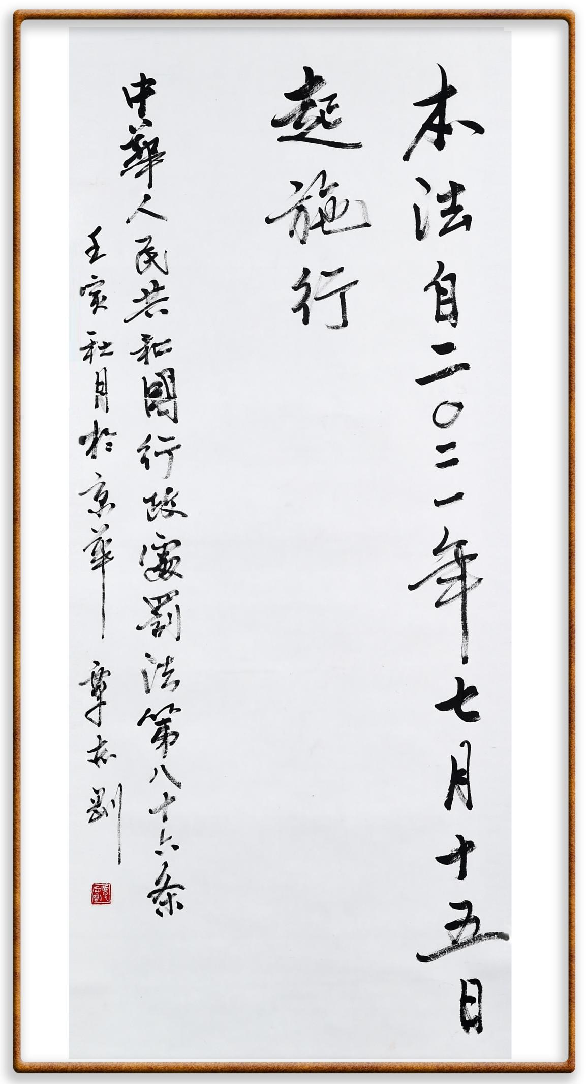 繼《中華人民共和國民法典》《中華人民共和國土地管理法》《中華人民共和國土地管理法實施條例》《中華人民共和國法律援助法》之后,法治日報社聯(lián)合北京市司法局、北京書法家協(xié)會,將筆端對準《中華人民共和國憲法》和《中華人民共和國行政處罰法》。