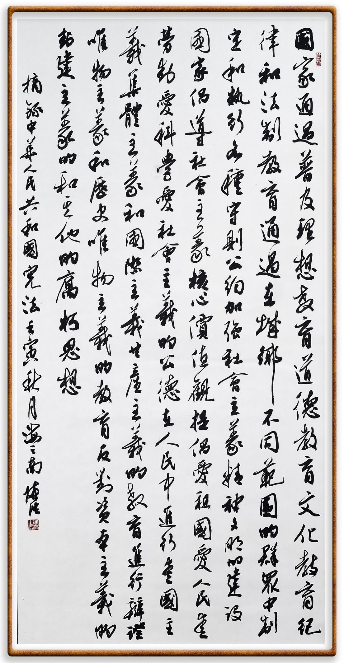 繼《中華人民共和國民法典》《中華人民共和國土地管理法》《中華人民共和國土地管理法實(shí)施條例》《中華人民共和國法律援助法》之后,法治日報社聯(lián)合北京市司法局、北京書法家協(xié)會,將筆端對準(zhǔn)《中華人民共和國憲法》和《中華人民共和國行政處罰法》。
