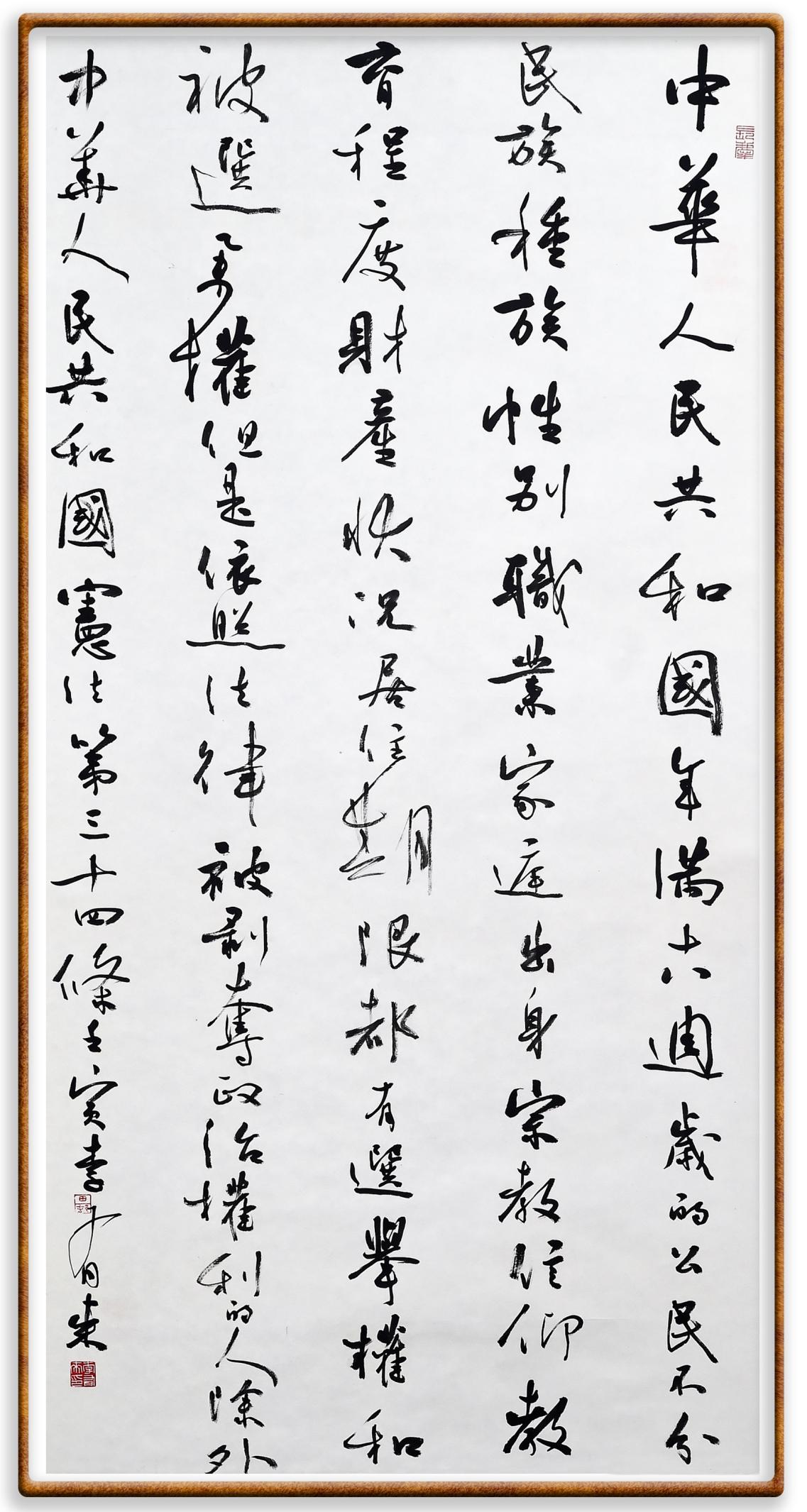 繼《中華人民共和國(guó)民法典》《中華人民共和國(guó)土地管理法》《中華人民共和國(guó)土地管理法實(shí)施條例》《中華人民共和國(guó)法律援助法》之后,法治日?qǐng)?bào)社聯(lián)合北京市司法局、北京書法家協(xié)會(huì),將筆端對(duì)準(zhǔn)《中華人民共和國(guó)憲法》和《中華人民共和國(guó)行政處罰法》。