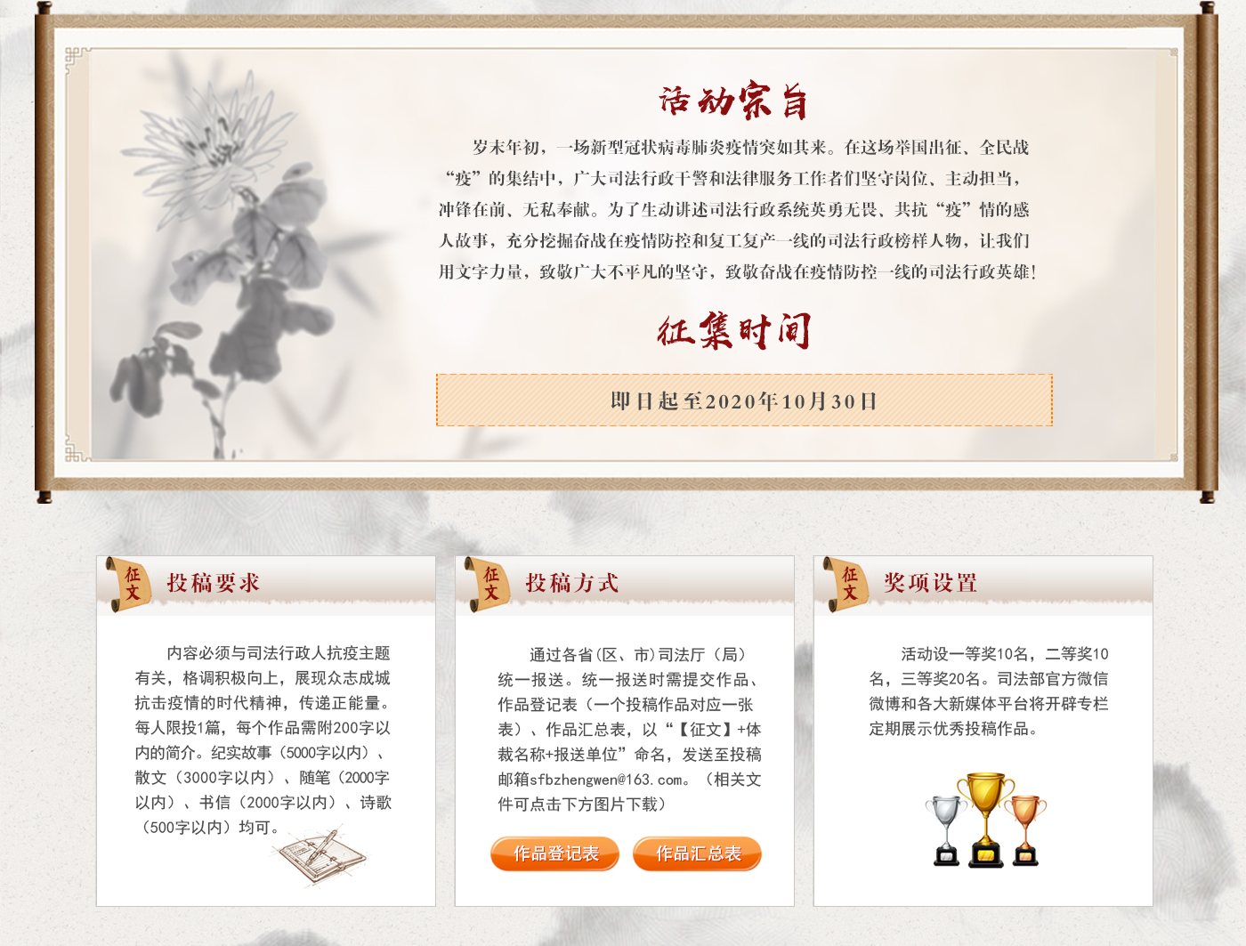 近日,司法部“致敬戰(zhàn)疫英雄”征文活動評選結果正式揭曉。這些獲獎作品通過文字生動地記錄了...[詳細]